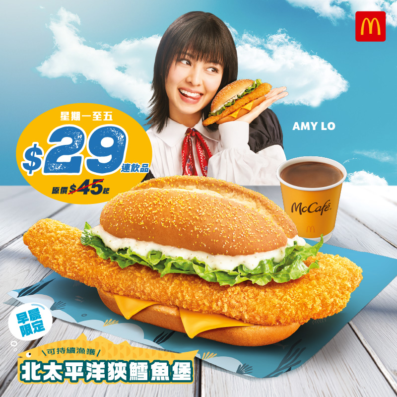 逢星期一至五早餐有多個選擇喇‼️北太平洋狹鱈魚堡🐟配飲品 $29咋